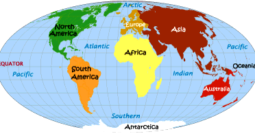 كم عدد القارات في العالم واسمائها مجلة البرونزية