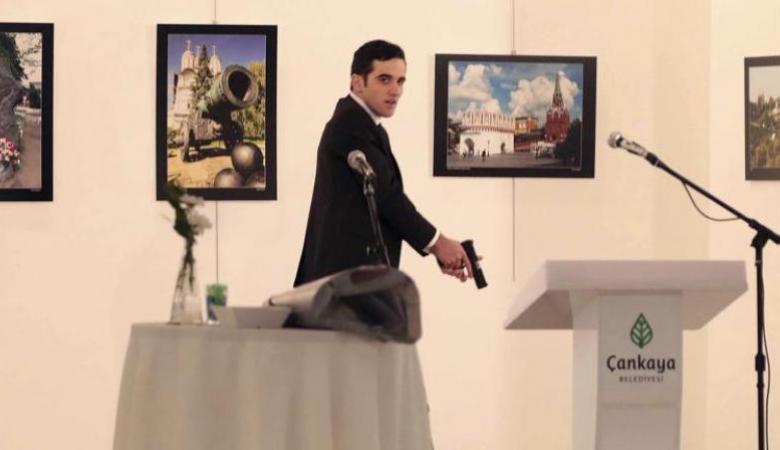 هي لحظة إغتيال السفير الروسي لدى تركيا أندري كارلوف الذي قتل في أنقرة الاثنين في هجوم مسلح نفذه شخص تحدث.